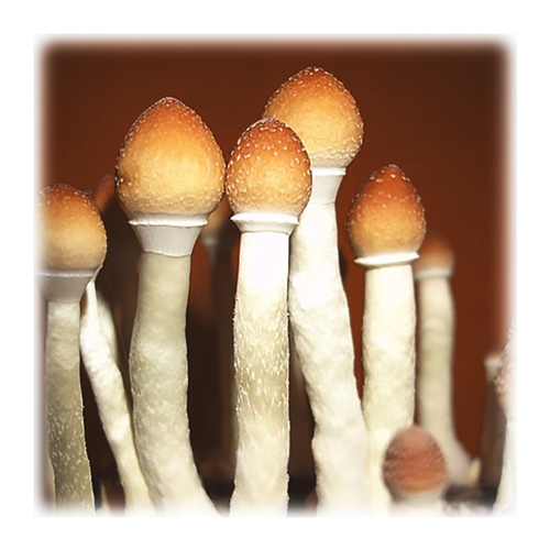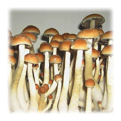 The Golden Teacher (Psilocybe aurumescens) is a variation on cubensis which is slightly stronger. It’s possible that Golden Teacher also contains a cocktail of other active substances which make the trip different. As it’s closely related to the Thai, this golden-coloured shroom is just as easy to cultivate. A complete grow-kit with 1200 cc is enough to cultivate 400 grammes of fresh shrooms. If you dry them, the shrooms will be left with about a tenth of their weight and they will be approximately ten times stronger.